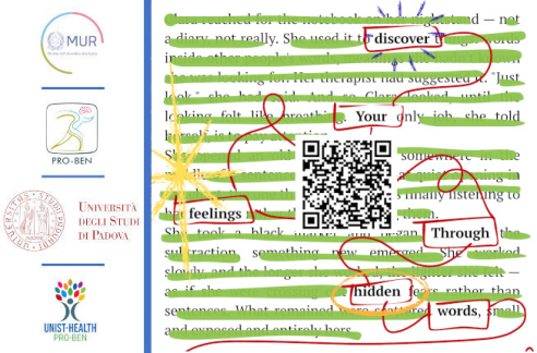 L'incontro è in data 27 Marzo alle ore 16:00 presso il Parco Venturini-Natale (ex Fistomba), dove i PHA presenteranno il progetto Pro-Ben e guideranno delle attività di mindfulness e di caviardage (una fusione di collage e scrittura poetico-creativa) sul concetto di "luogo sicuro". Al termine delle attività, si potrà condividere il proprio lavoro e partecipare ad uno scambio di opinioni
